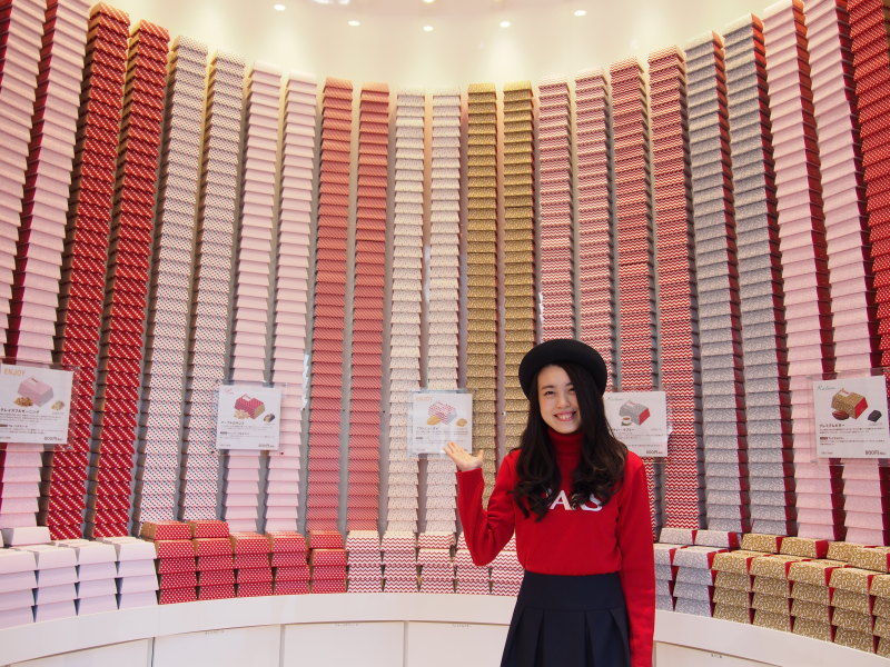 パッケージを店内の装飾として用い、壁面に積み上げました。